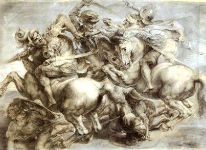 I contorni delle figure disegnate vengono forate con delle punte metalliche, poi si appoggia il cartone preparatorio all’intonaco fresco e lo si “spolvera” tamponandolo con nero fumo (finissima polvere di carbone), viene così lasciata l’impronta del disegno sulla parete attraverso i fori.