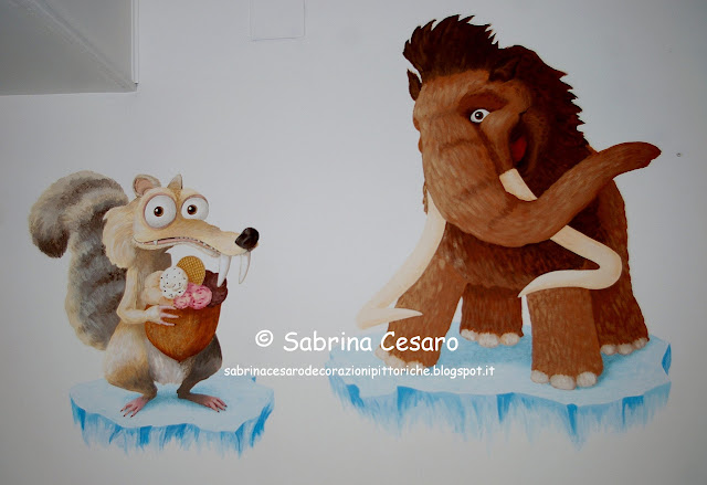 Si procede poi con la stesura di un fissativo, su tutta la superficie da decorare, per bloccare la polvere e favorire l’adesione della pittura alla parete; si può utilizzare un pennello largo e piatto o spruzzare il prodotto omogeneamente con una pompetta.Asciugato bene il fissativo, si può cominciare a dipingere; si parte dallo sfondo, utilizzando pennelli larghi , spray o rulli, per passare gradualmente ai soggetti in primo piano.